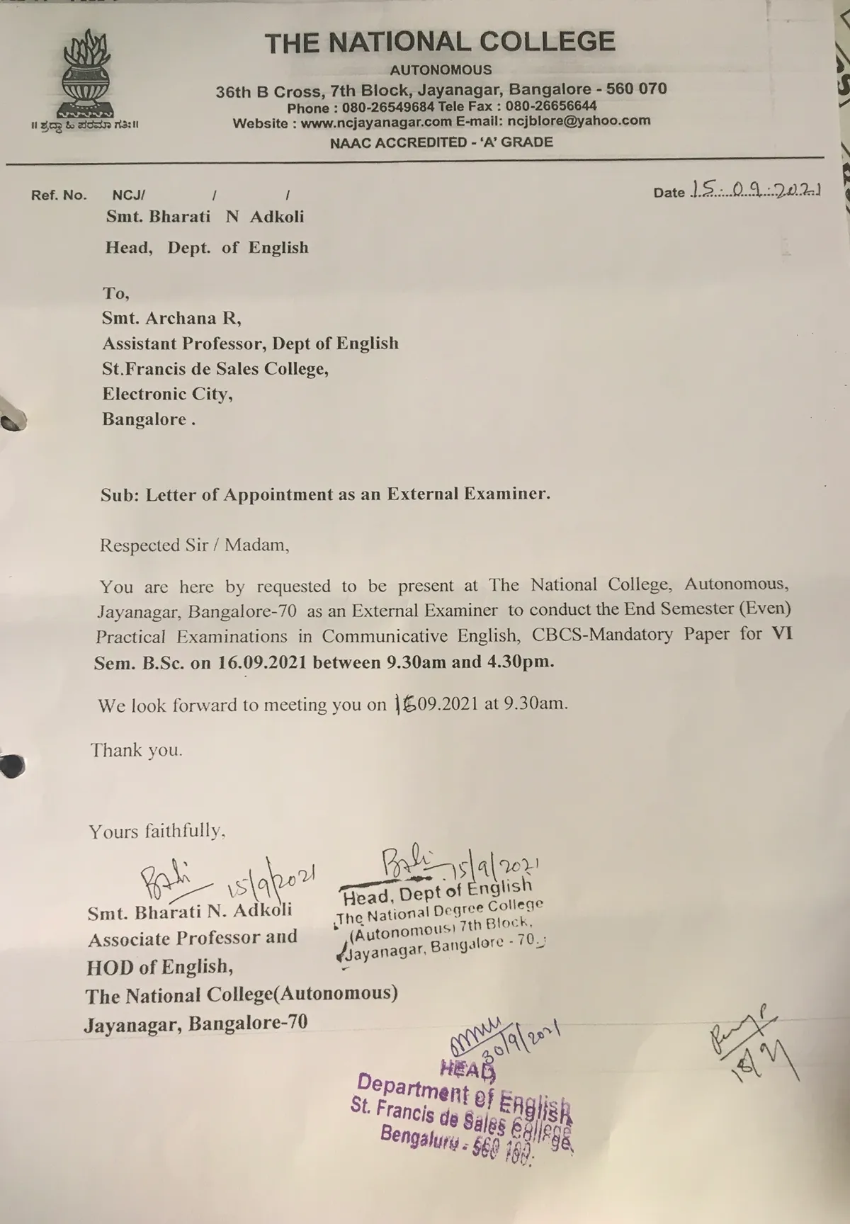 NAAC 'A' Accredited | Affiliated To Bangalore University | AICTE Approved