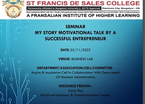SEMINAR MY STORY MOTIVATIONAL TALK BY A SUCCESSFUL ENTERPRENUER
