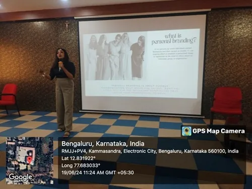 The objective of this session was to equip students with the essential skills and knowledge required to build and manage their personal brand effectively. Through an engaging and informative workshop, we aim to provide insights into various aspects of personal grooming, branding, self-promotion and communication strategies that are vital for professional growth and success. Key Aspects to be Covered: