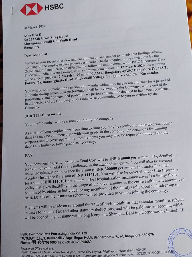 Kriti Srivastava Appointment Letter