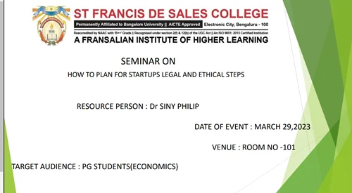 SEMINAR ON HOW TO PLAN FOR STARTUPS LEGAL AND ETHICAL STEPS ON ENTREPRENEURSHIP PROGRAM