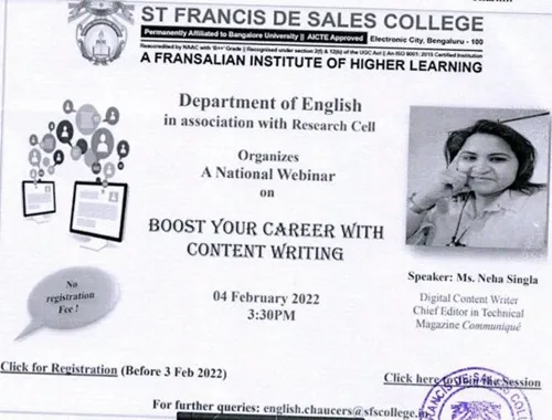 STUDENT NATIONAL SEMINAR ON BOOSTING THE CAREER WITH CONTENT WRITING