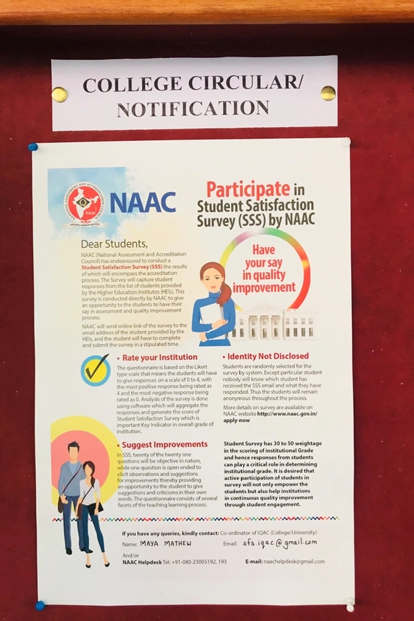 Students are hereby informed to complete the Student Satisfaction Survey as part of the NAAC Accreditation Proces