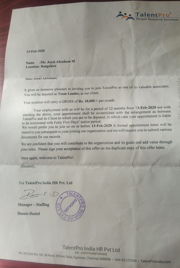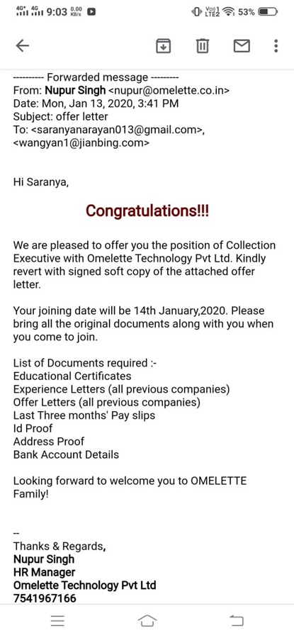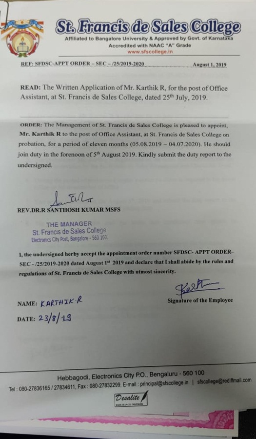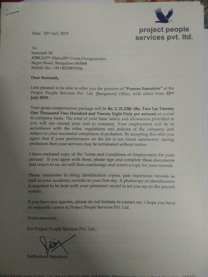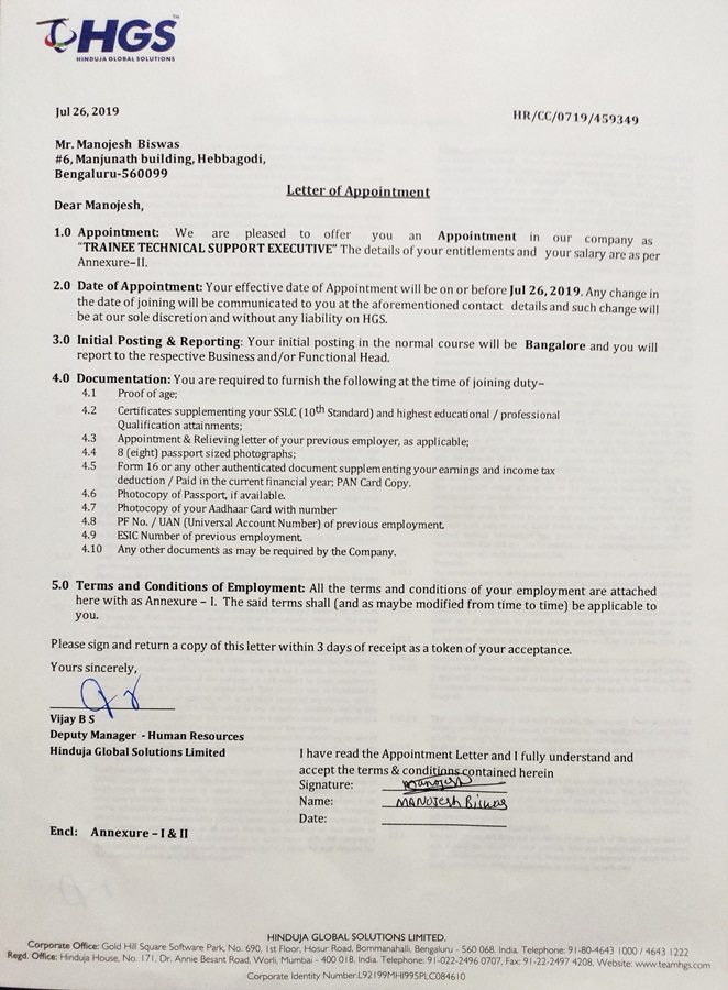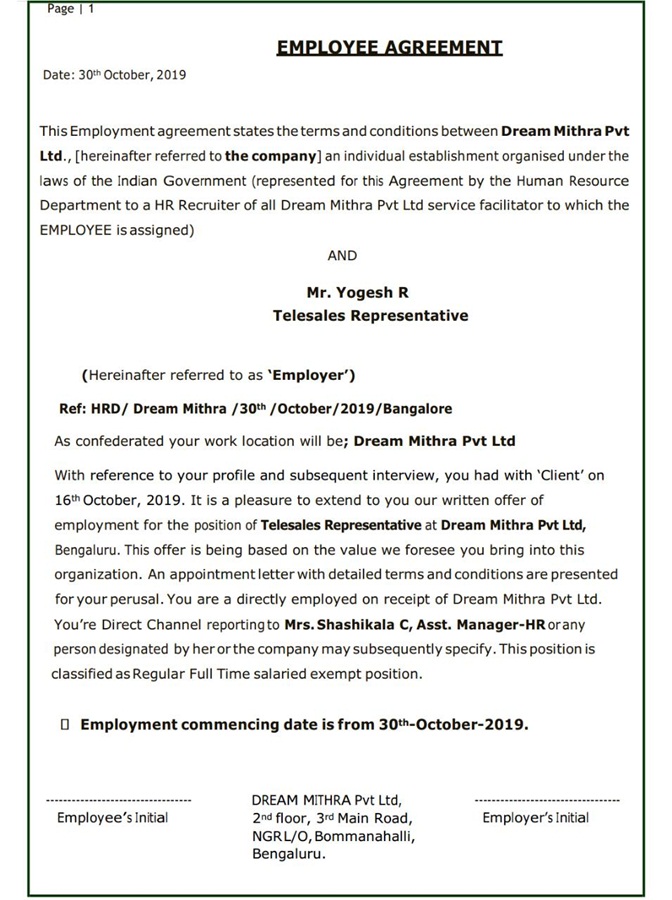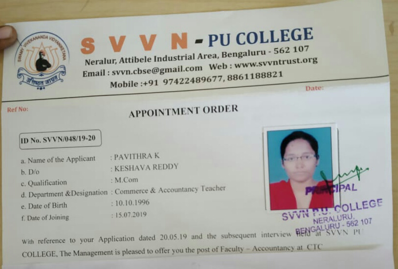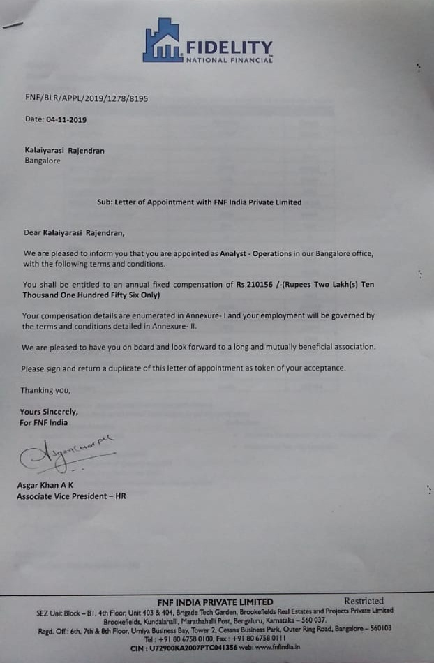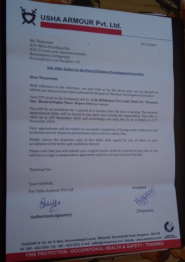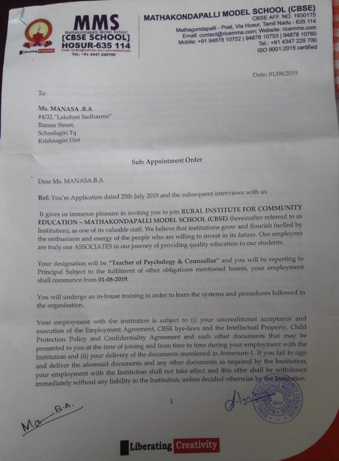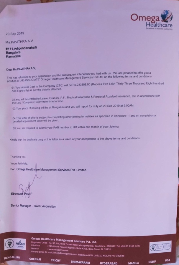 Kriti Srivastava Appointment Letter